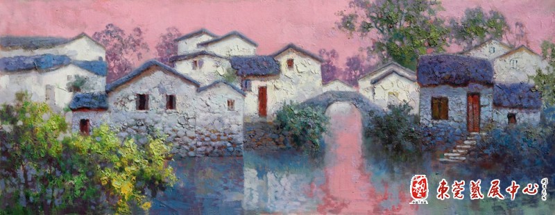 《国画水乡的油画尝试之粉红的记忆》70X180CM